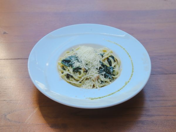 Taze ıspanak, rokfor, ceviz, fesleğen, parmesan eşliğinde linguine